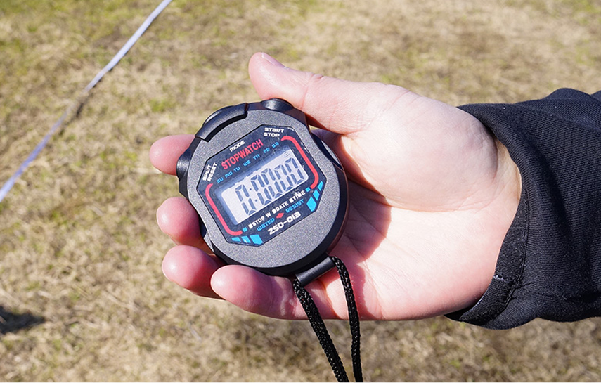 - 50メートル走のタイム測定とフォーム確認
